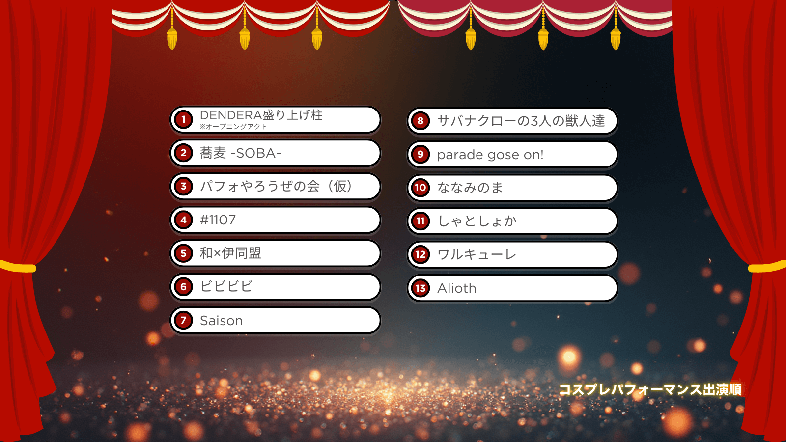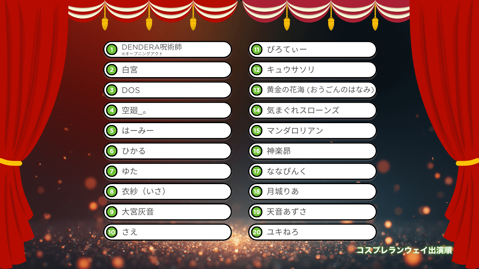 ステージイベント出演者の一覧表