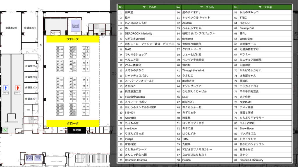 同人即売会サークル配置表